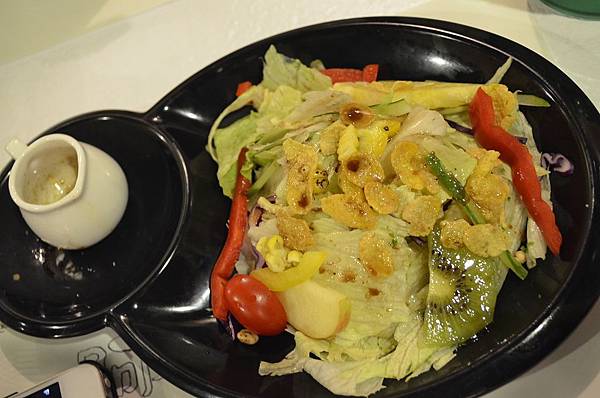 這道我沒吃過,也是我們當中第一次有人點,加的料比較特別,除了甜椒、蘋果竟然還有玉米片!!!