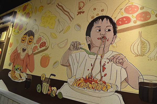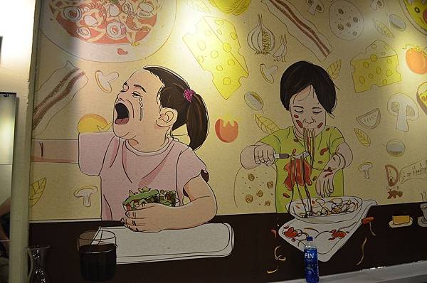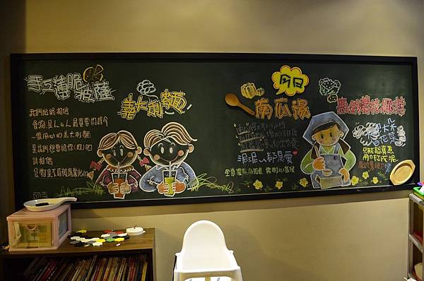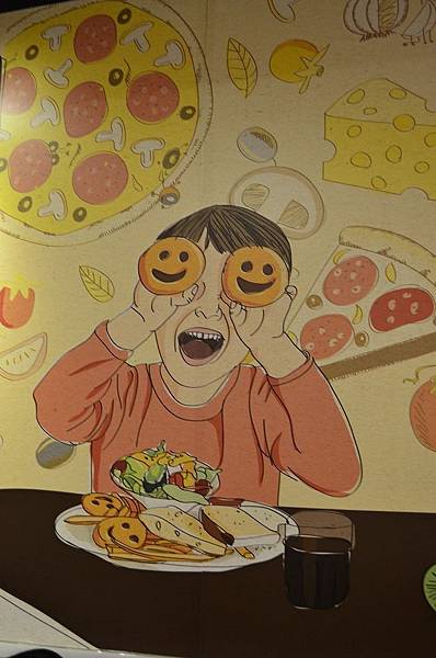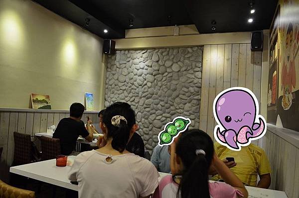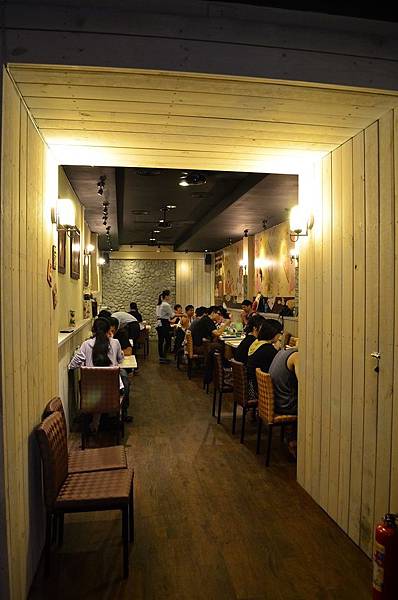 裡面裝潢是以木材跟石頭搭配,牆上還有有趣的插畫跟門口的帆布是一樣的~~