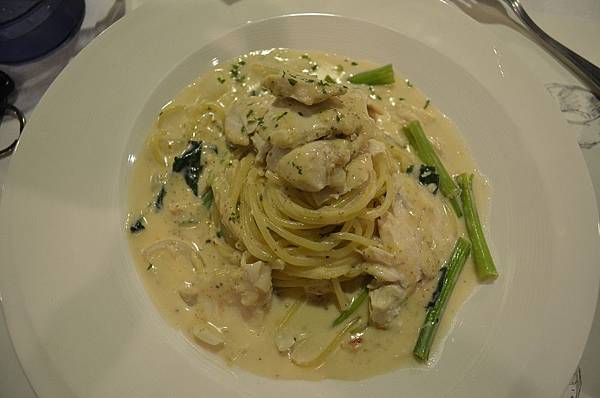 首先送上來的是【 德式芥末奶油雞肉義大利麵 】NT.180,