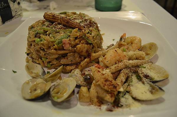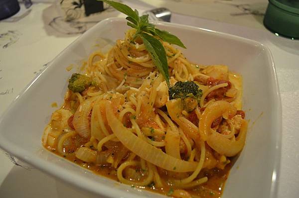 就是有點偏南洋風味的義大利麵了這樣大家應該比較好懂~ 不過我沒吃出紅咖哩味只記得辣口,哈!!