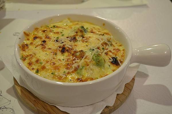 雖然起司香濃很好吃,不過點這道的配菜就只有花椰菜,對喜歡有配料的人來說吃完可能會有點空虛![]()