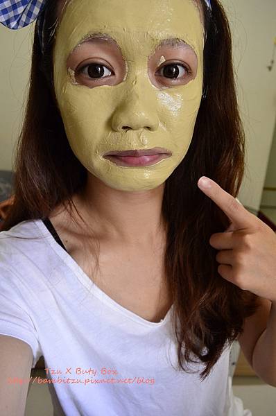 記得敷泥狀面膜要 避開眼周 唷 我眼皮上面那點就不要計較了