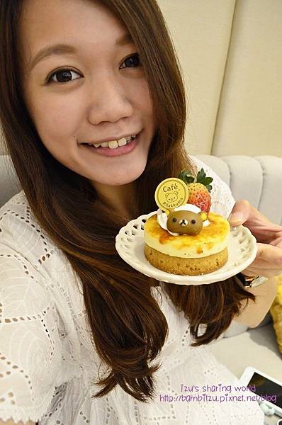 這個焦糖起司塔搭配的是拉拉熊的巧克力裝飾,