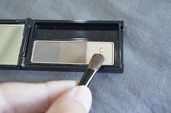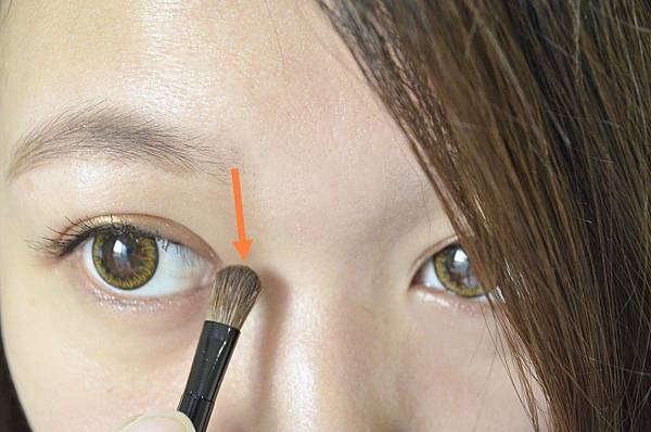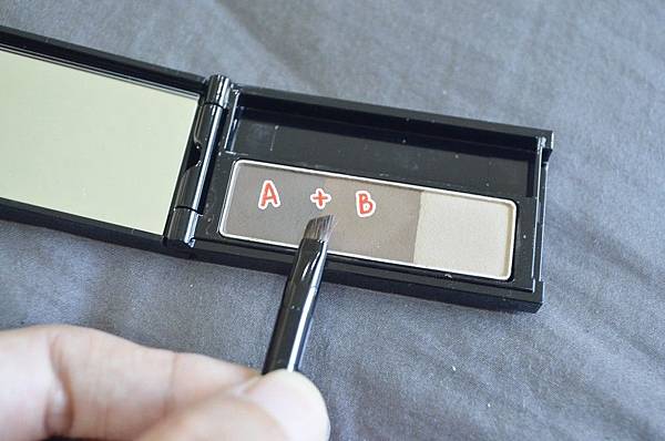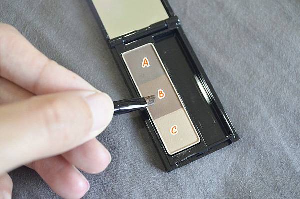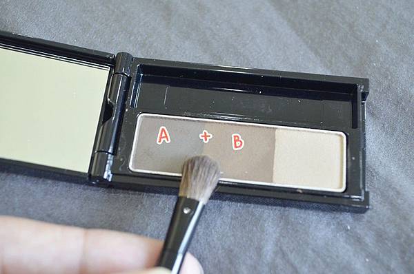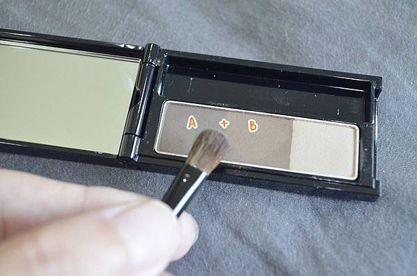 步驟三:用鼻影刷頭混合沾取A.B兩色,加濃 眉頭 部分