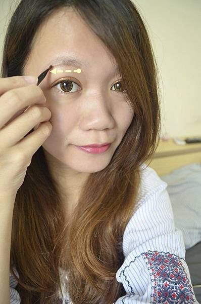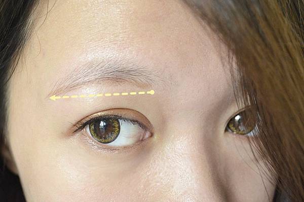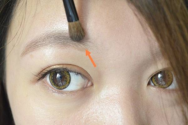 接著再輕輕把眉毛的地方帶過,勾勒出整體眉型,