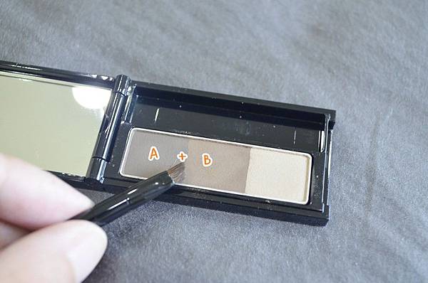 步驟二 : 使用【 造型眉彩餅EX-5 】用尖刷頭 混合A.B,刷過整條眉毛