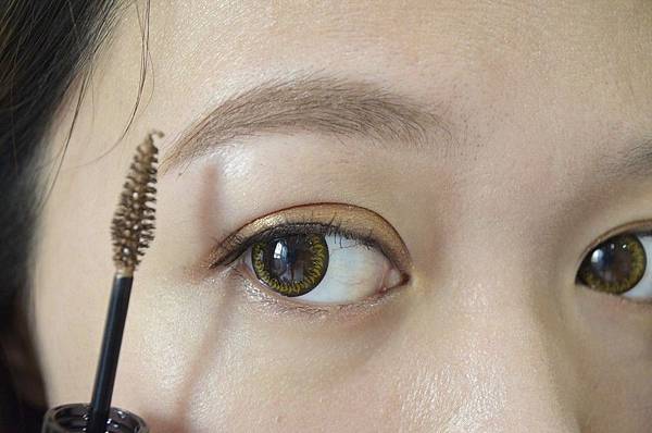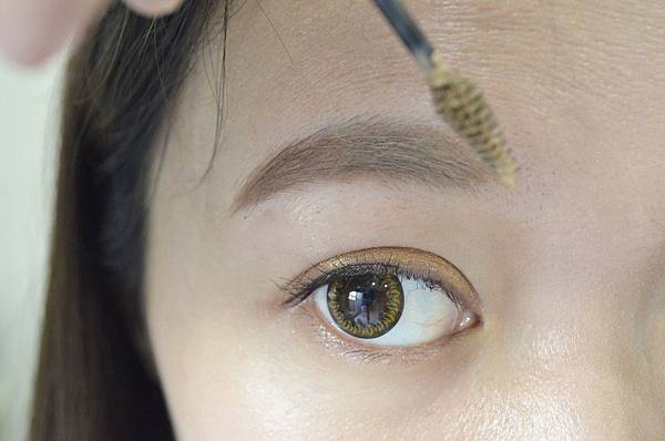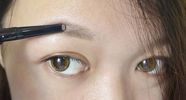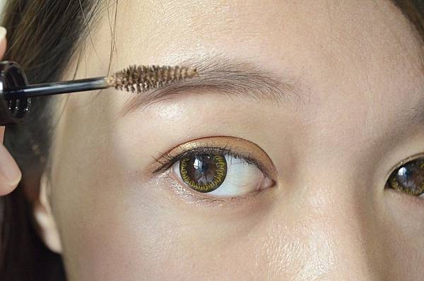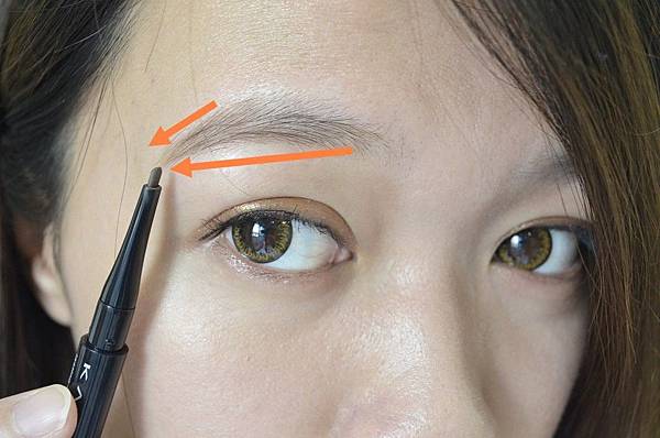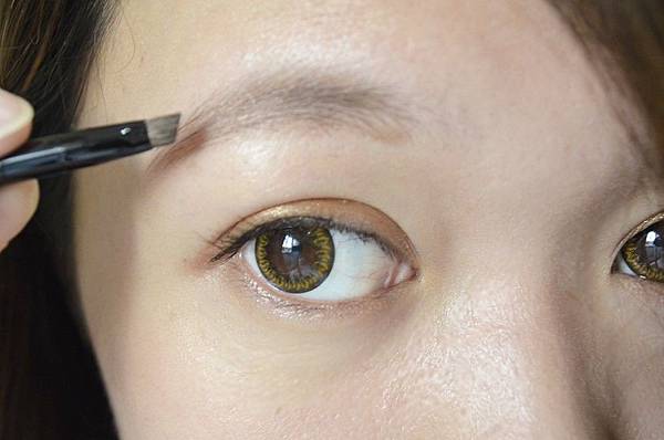 步驟五: 使用【 時尚眉彩膏 BR-1 】 較深較接近頭髮的那個顏色疊加在眉毛中段至眉尾,