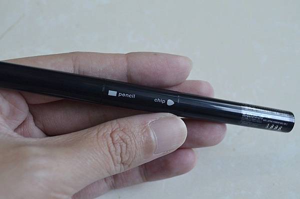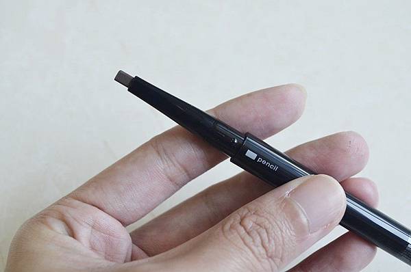 Pencil這頭是 扁平筆頭 的眉筆,筆芯偏硬,很好用來勾勒形狀,