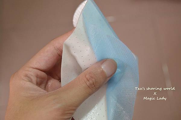 先拆掉藍色不織布後,就可以看到薄如蟬翼的蠶絲布面膜啦