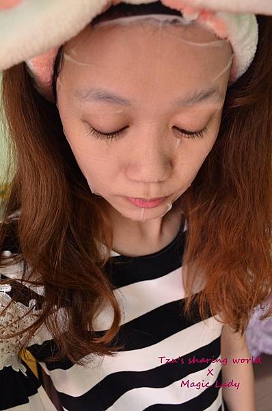 下面這張照片是心血來潮要示範面膜有多服貼而拍的照片,臉朝下面膜依然乖乖就定位,