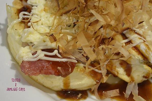 鬆餅上面除了塗上大阪燒醬還有常見的美乃滋,