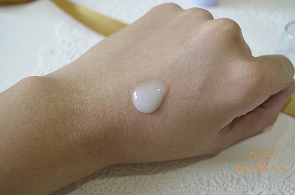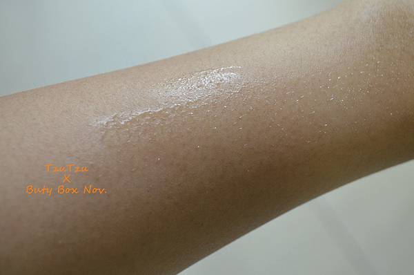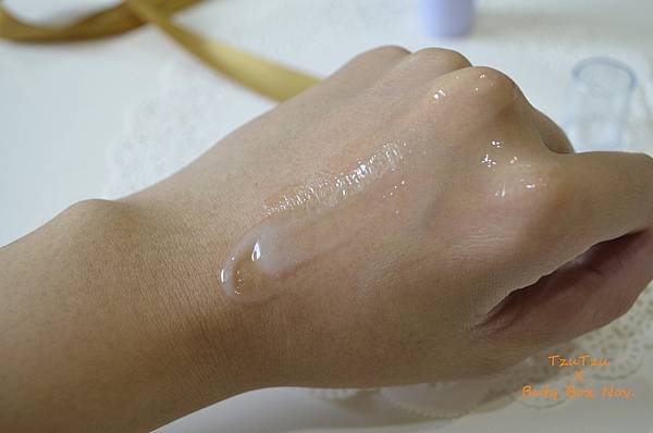 保濕緊緻化妝水使用在手上的樣子,讓我意外的是 它幾乎沒有任何味道,